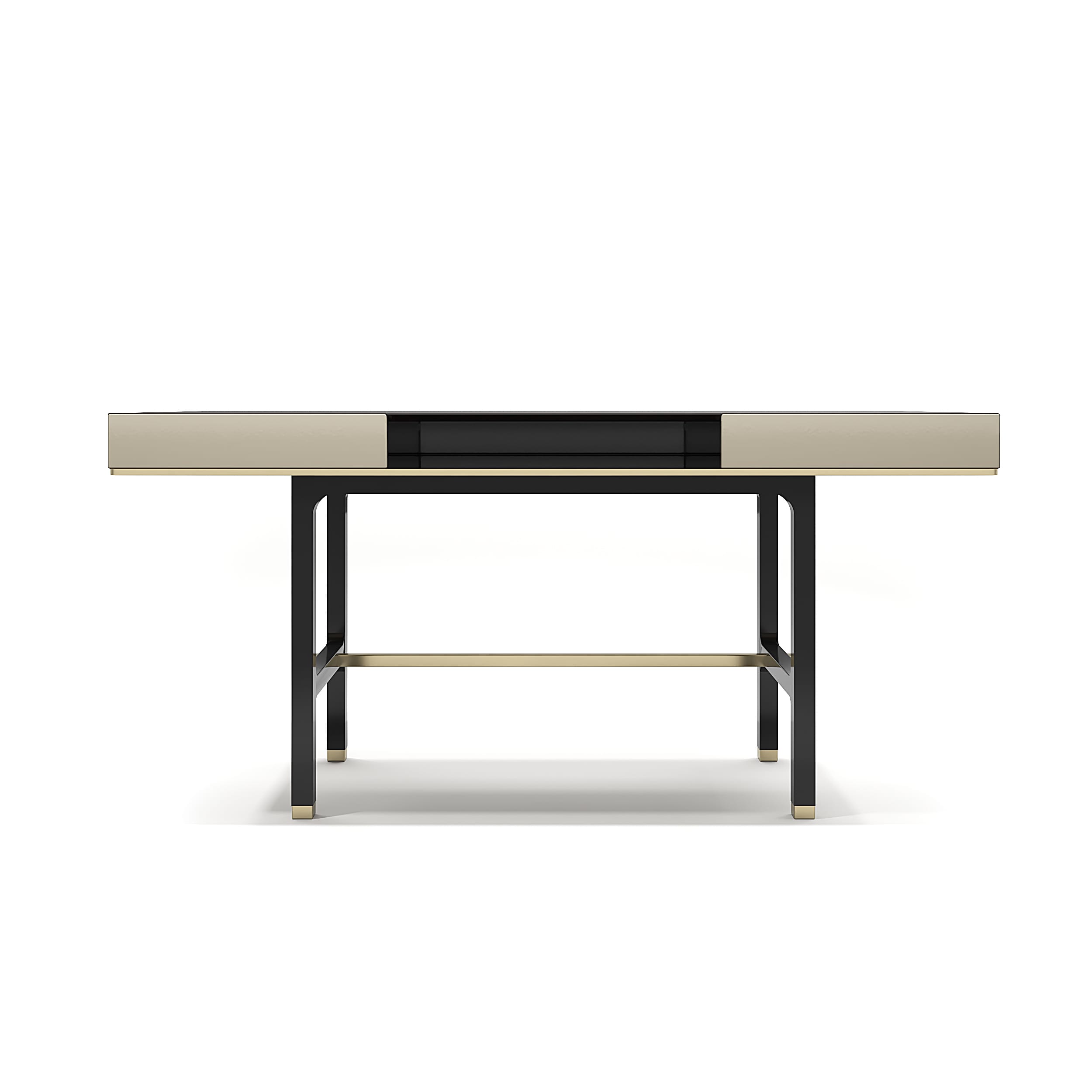 Designed by Boatto Martino Studio in 2020, the piece sits lightly on lacquered legs that lift the wooden structure just enough to keep it visually agile. The central opening introduces a sense of ease and lightness, so the desk never feels bulky, even in smaller rooms.
