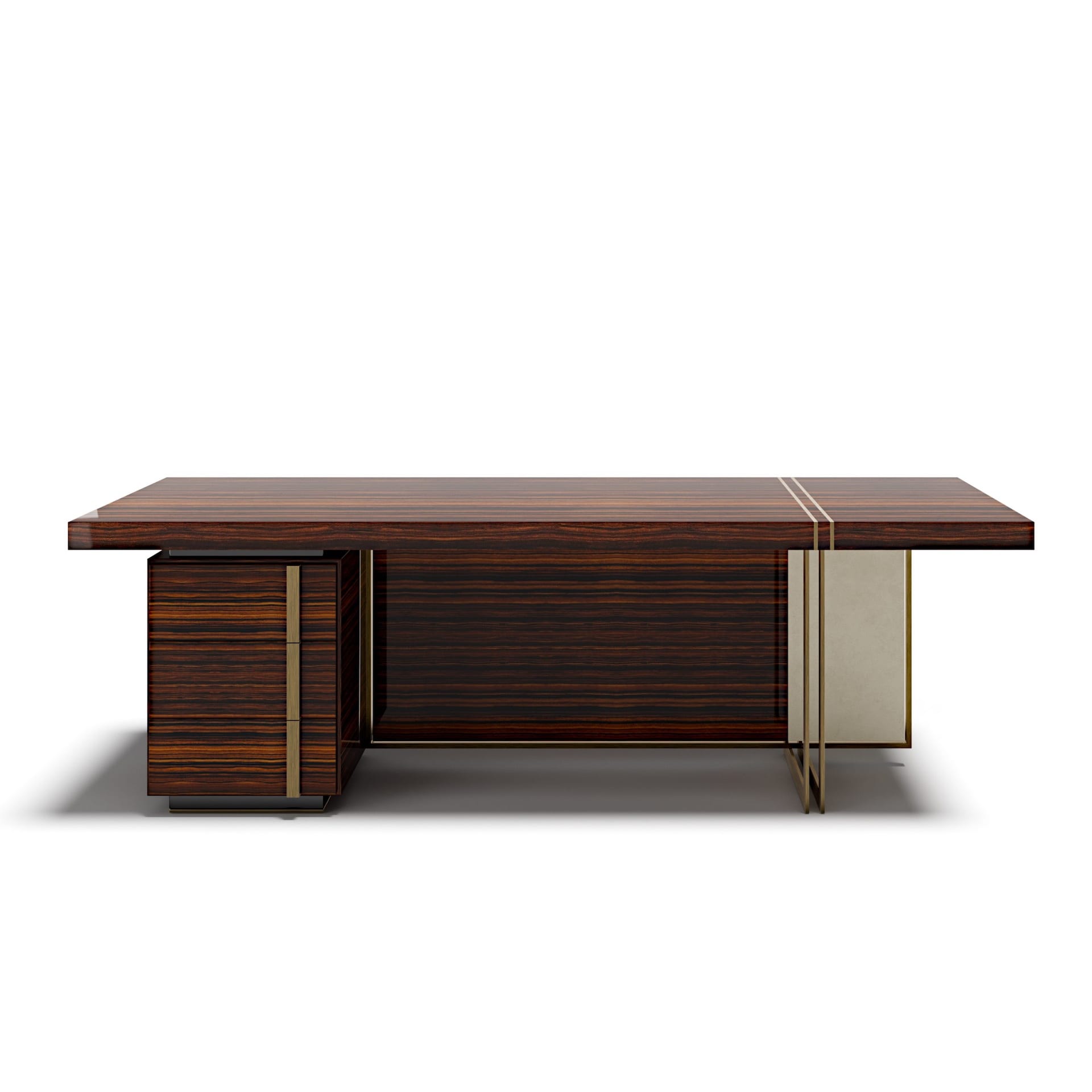 The desk is conceived as a long-term piece, not a seasonal purchase. Wood, metal, and quality Italian leather age in a way that adds character when handled with basic care. Surfaces are robust enough for daily office use, and the solid weight underlines that this is a stable work partner. Over time, the materials will tell the story of how the desk is used, while the clear geometry keeps it looking relevant in changing interiors.