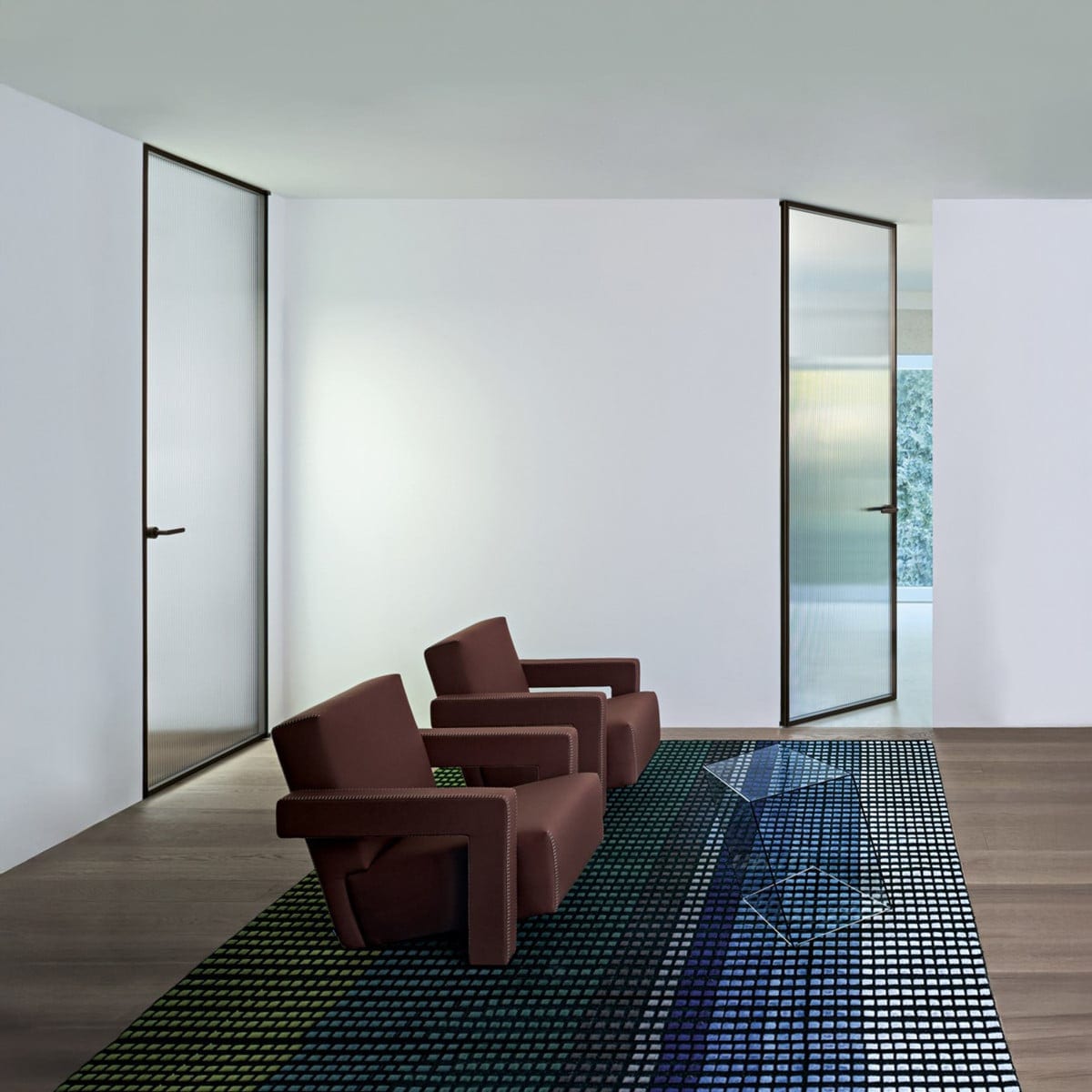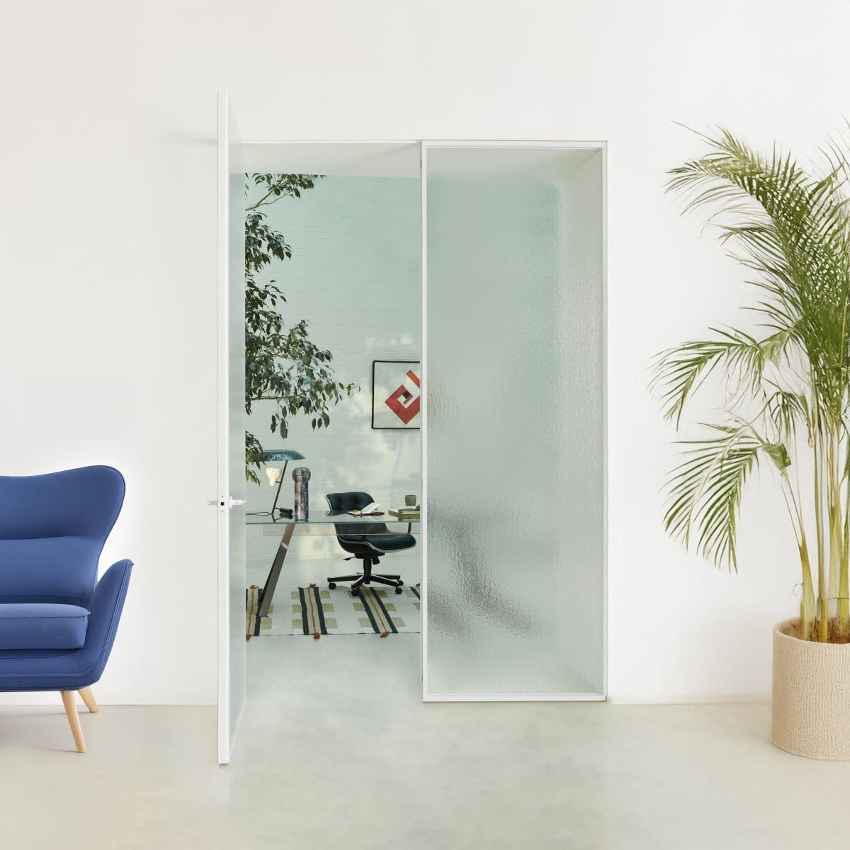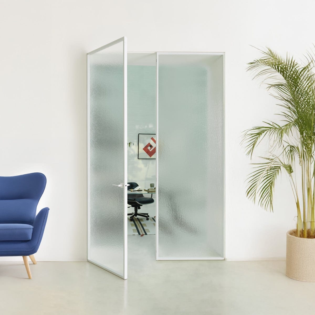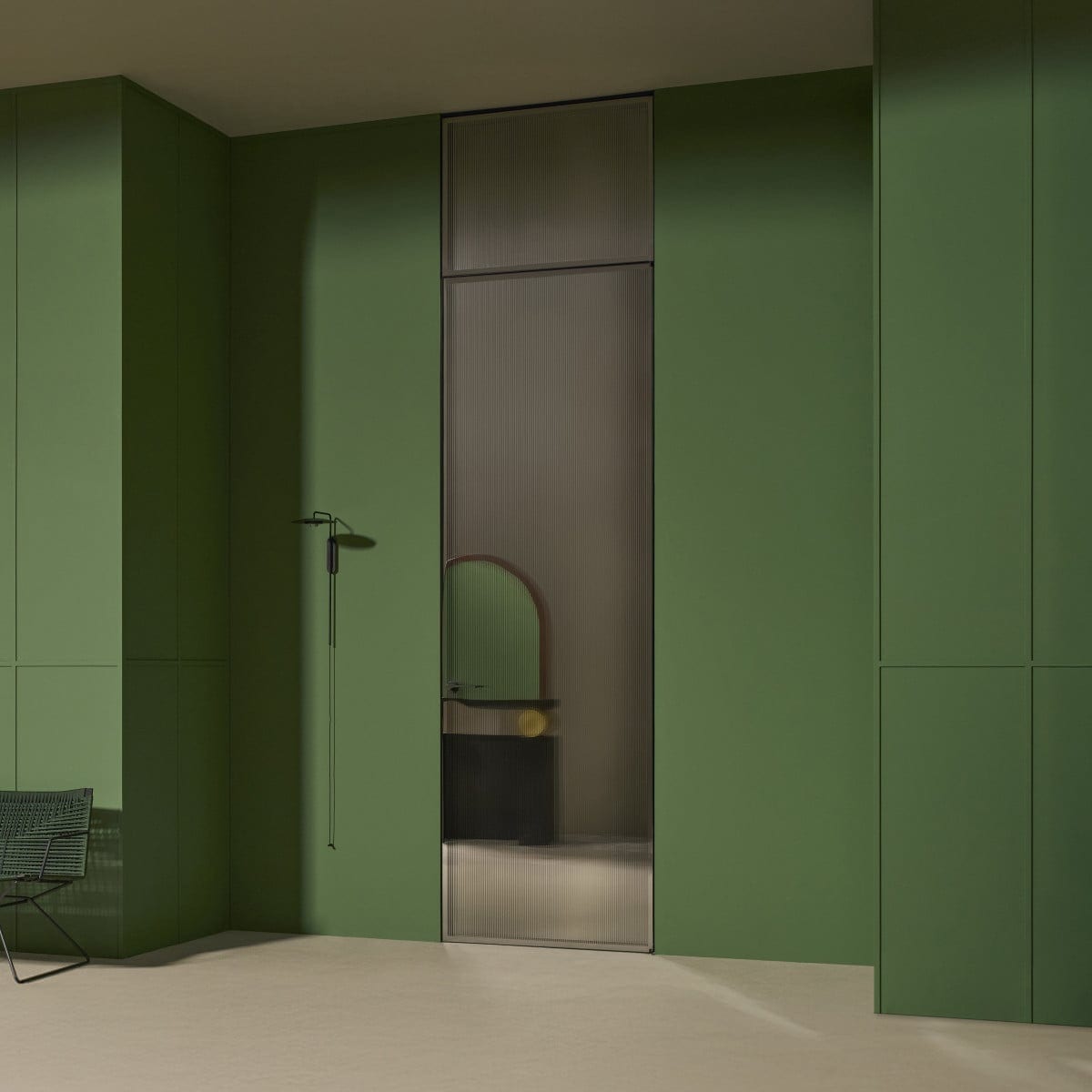 This model works naturally in modern residential interiors, studios, and hospitality settings where light and separation need to coexist. It can define an entry to a dressing area, a private office, or a quieter zone off a main living space, while still keeping visual continuity.