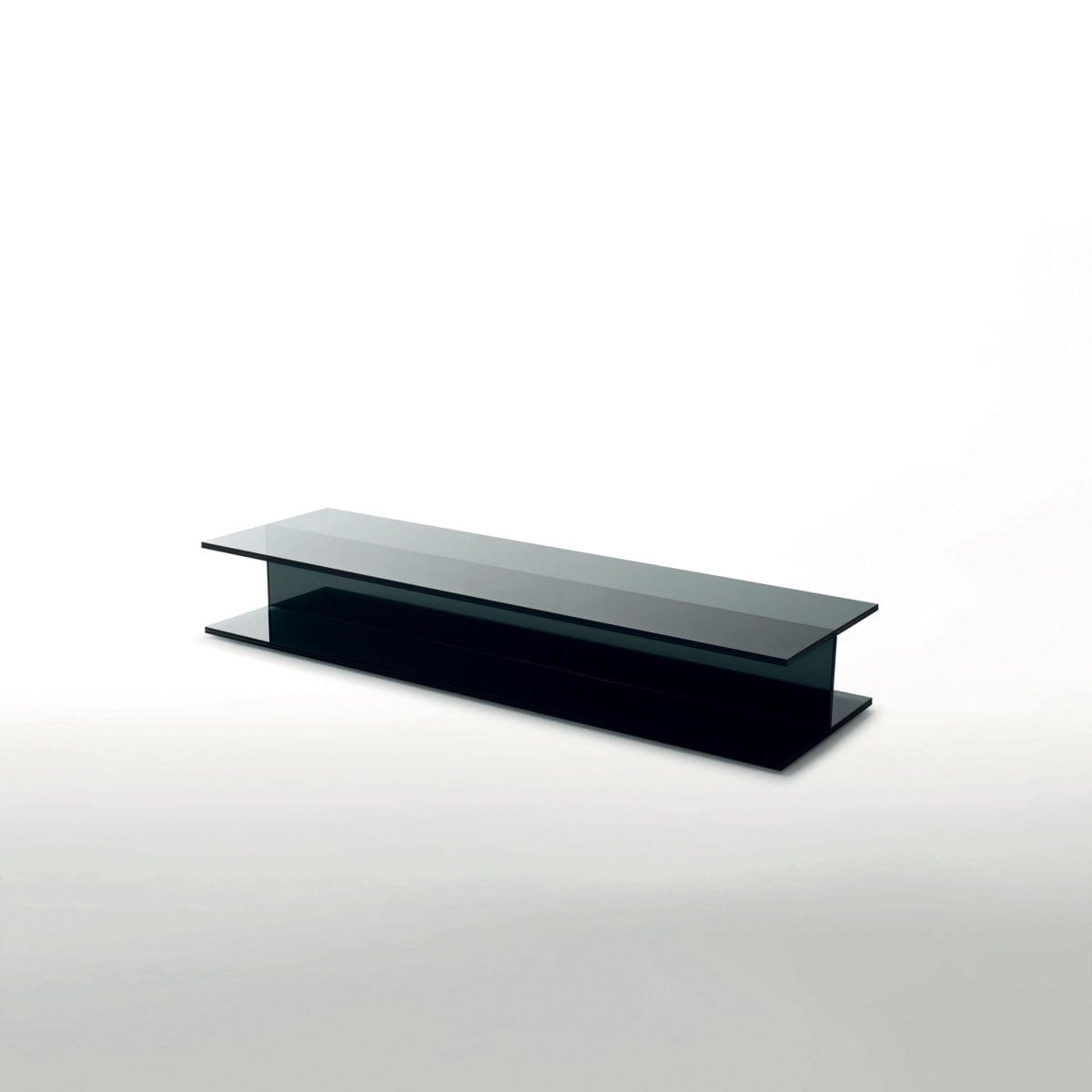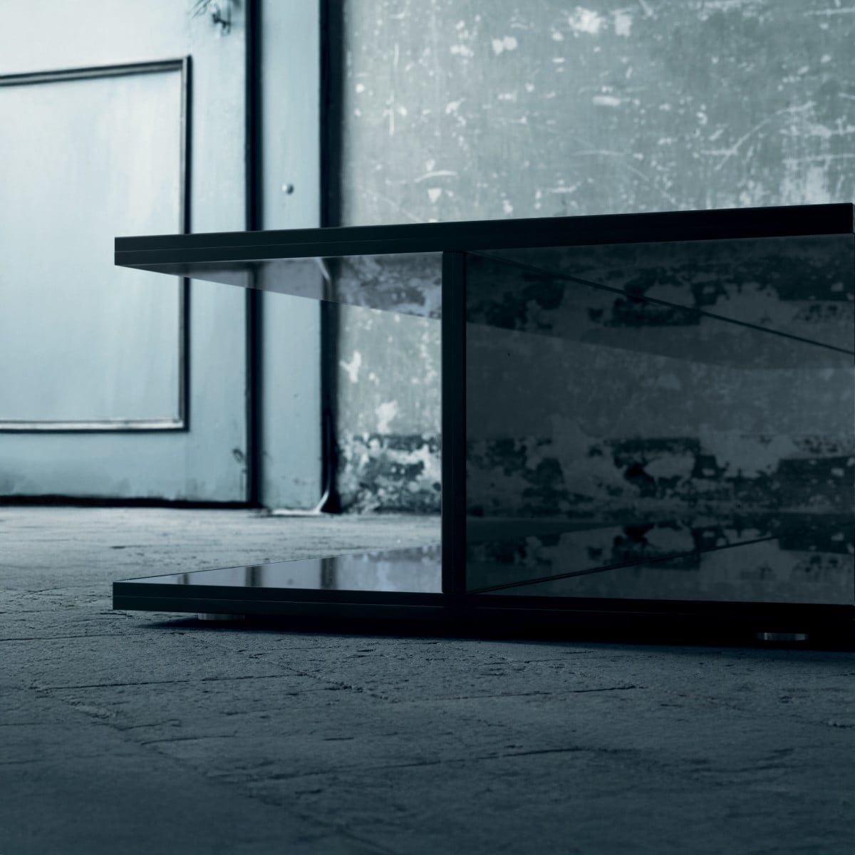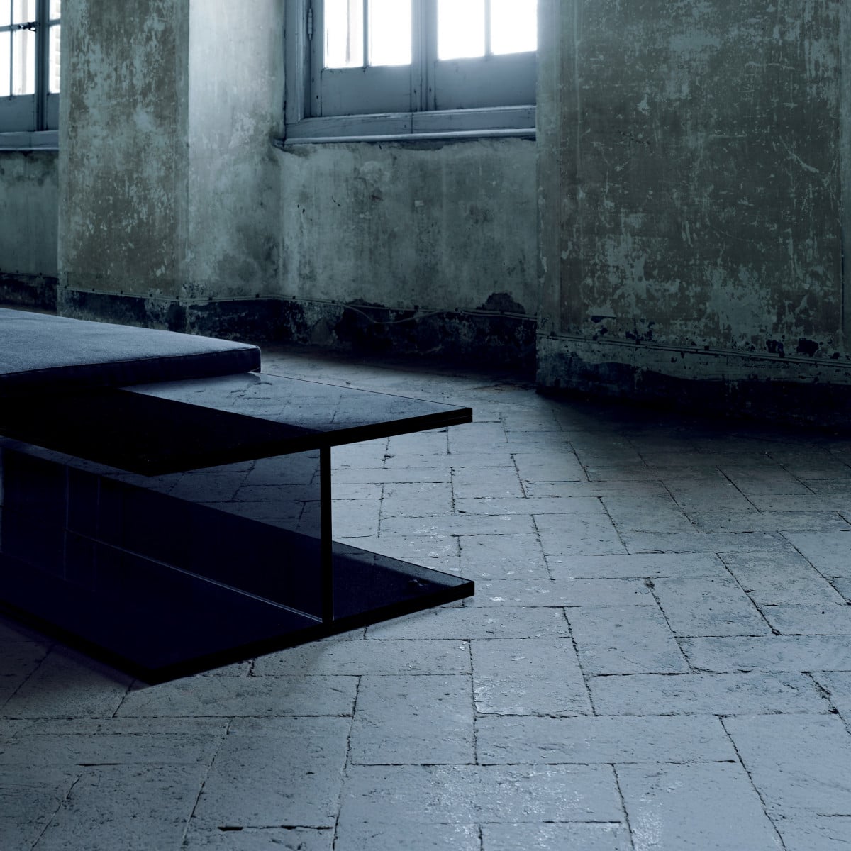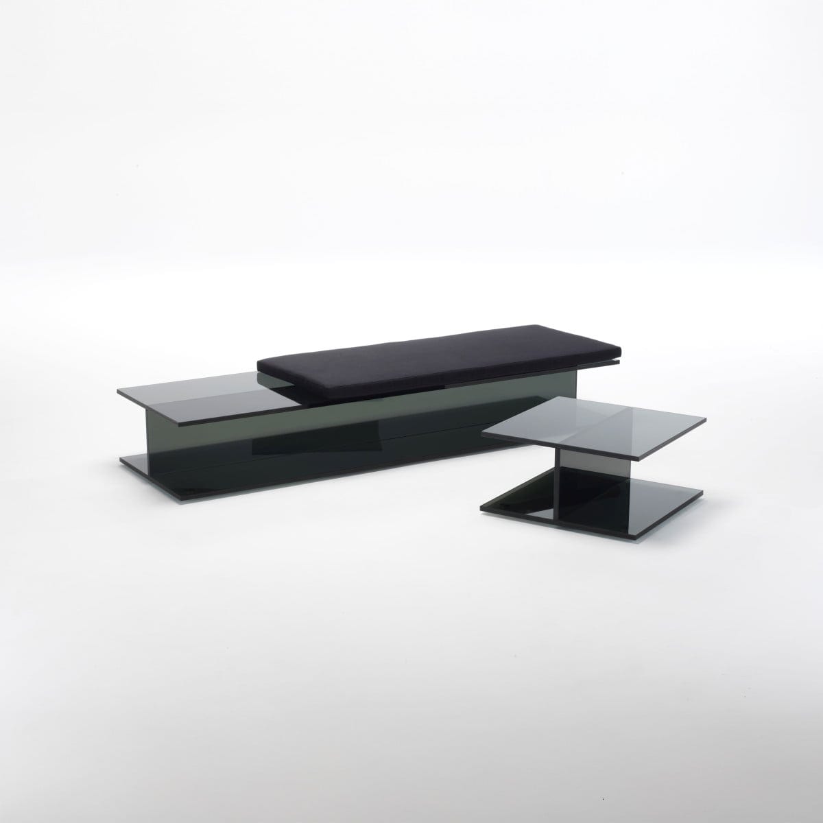 Designed by Jean-Marie Massaud, the piece has a low, architectural stance at 11.4 inches high. In smoked glass, the lines stay crisp while the tone stays soft. And because the profile is so controlled, it works as a side table or as a bench without needing a different language.