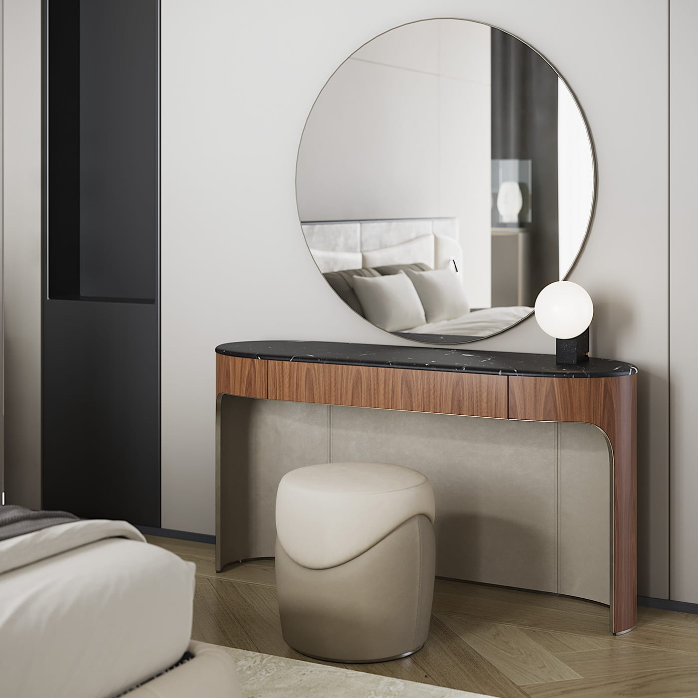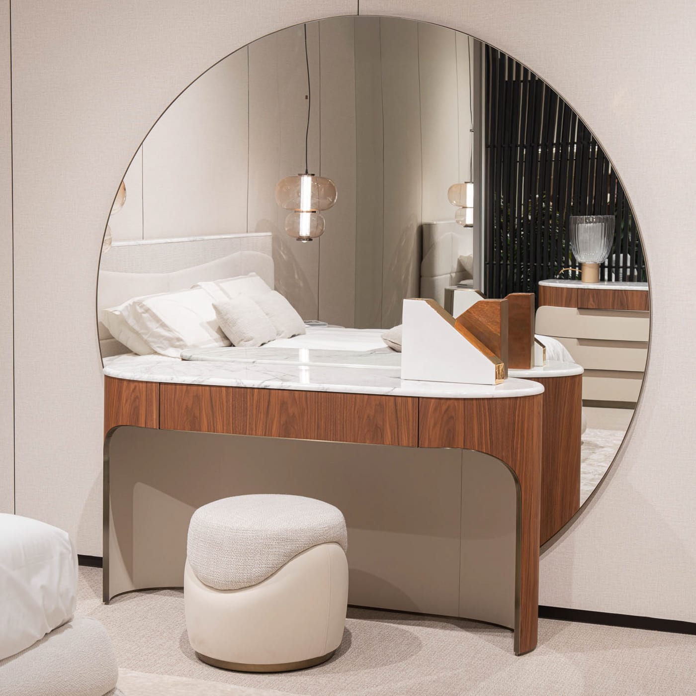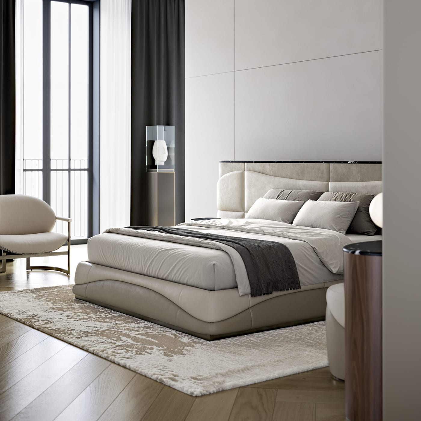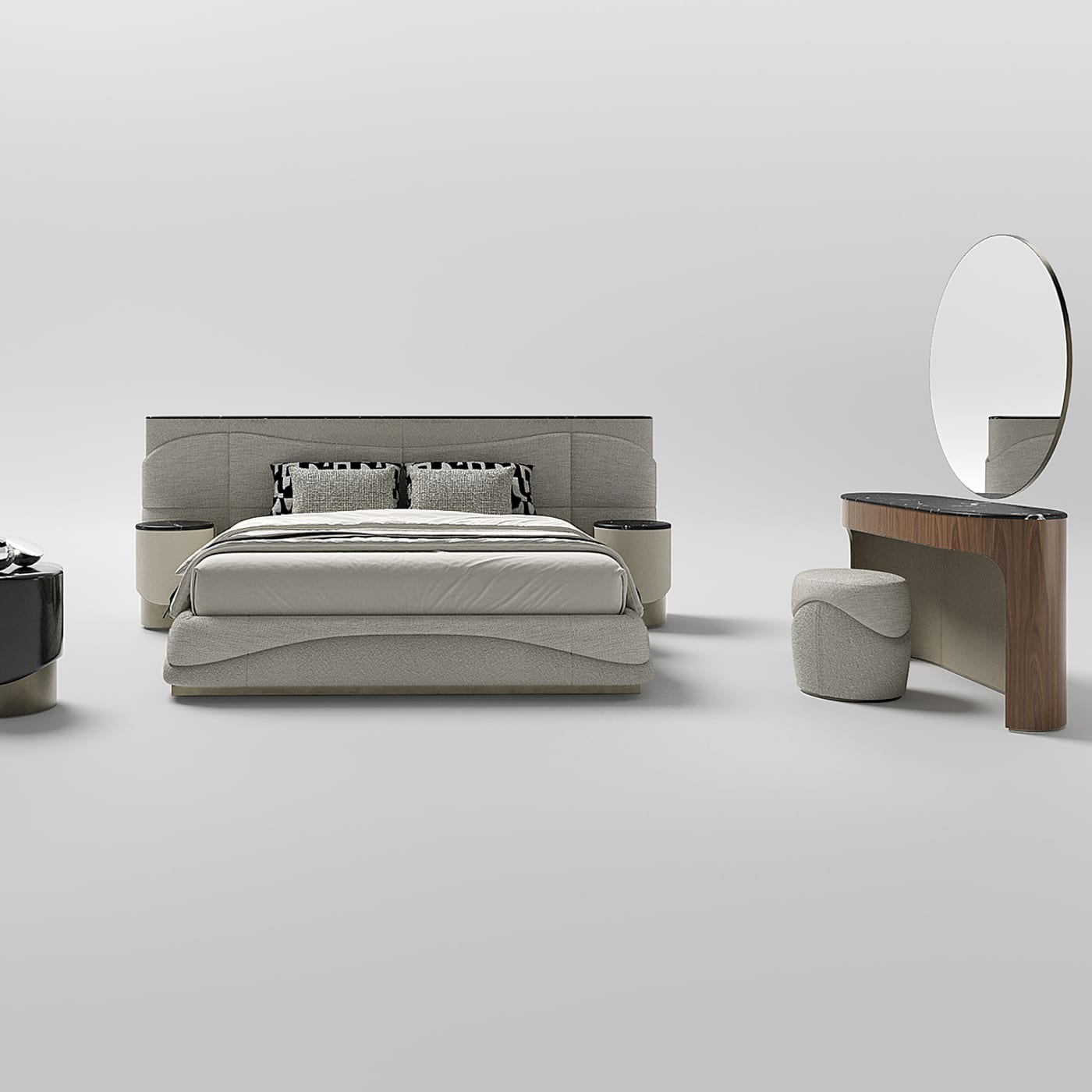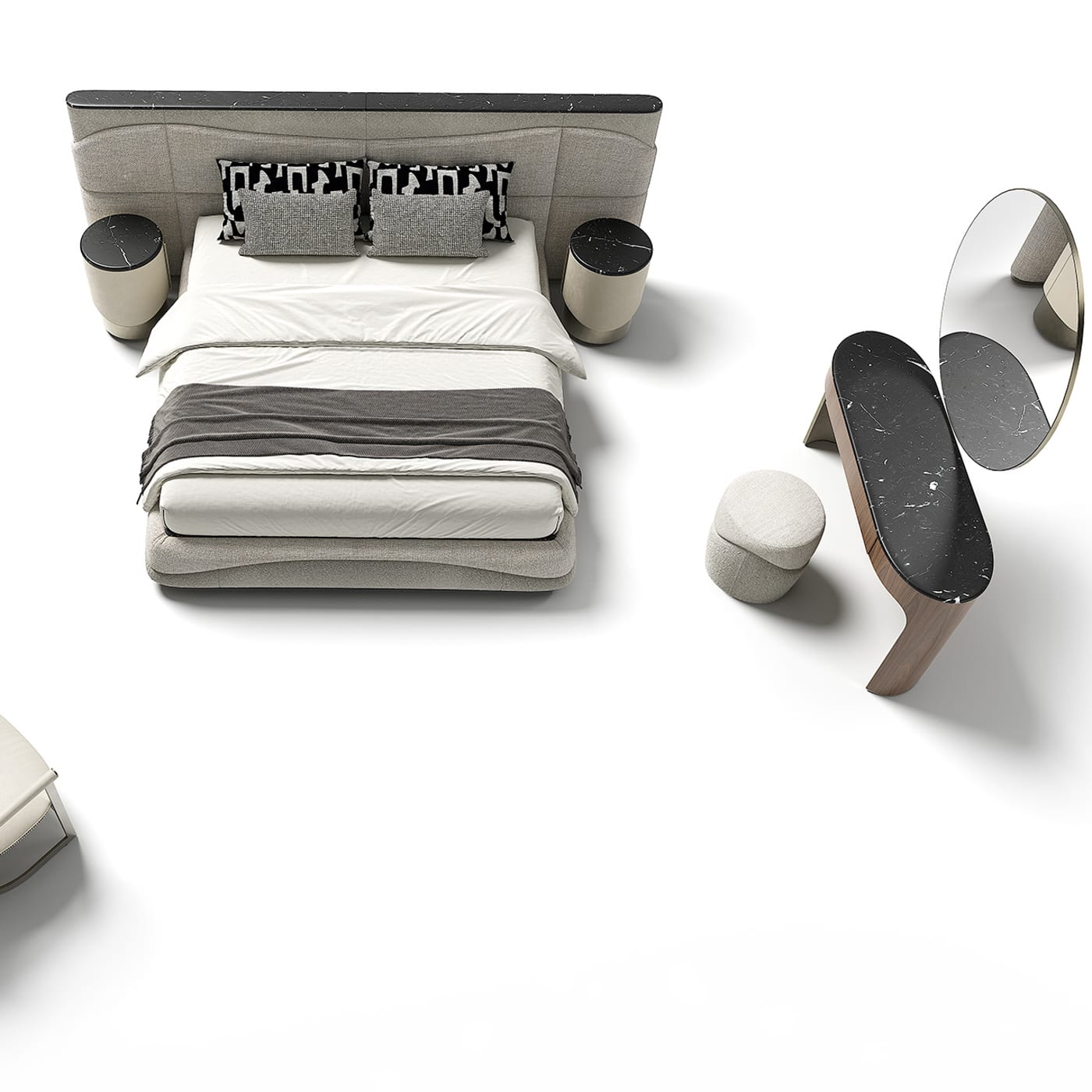 Designed by Margherita Fanti, the piece focuses on proportion and balance. Nothing shouts. The volume is rounded, the transitions are smooth, and the overall look is one of quiet ease that pairs easily with both generous beds and streamlined contemporary seating.