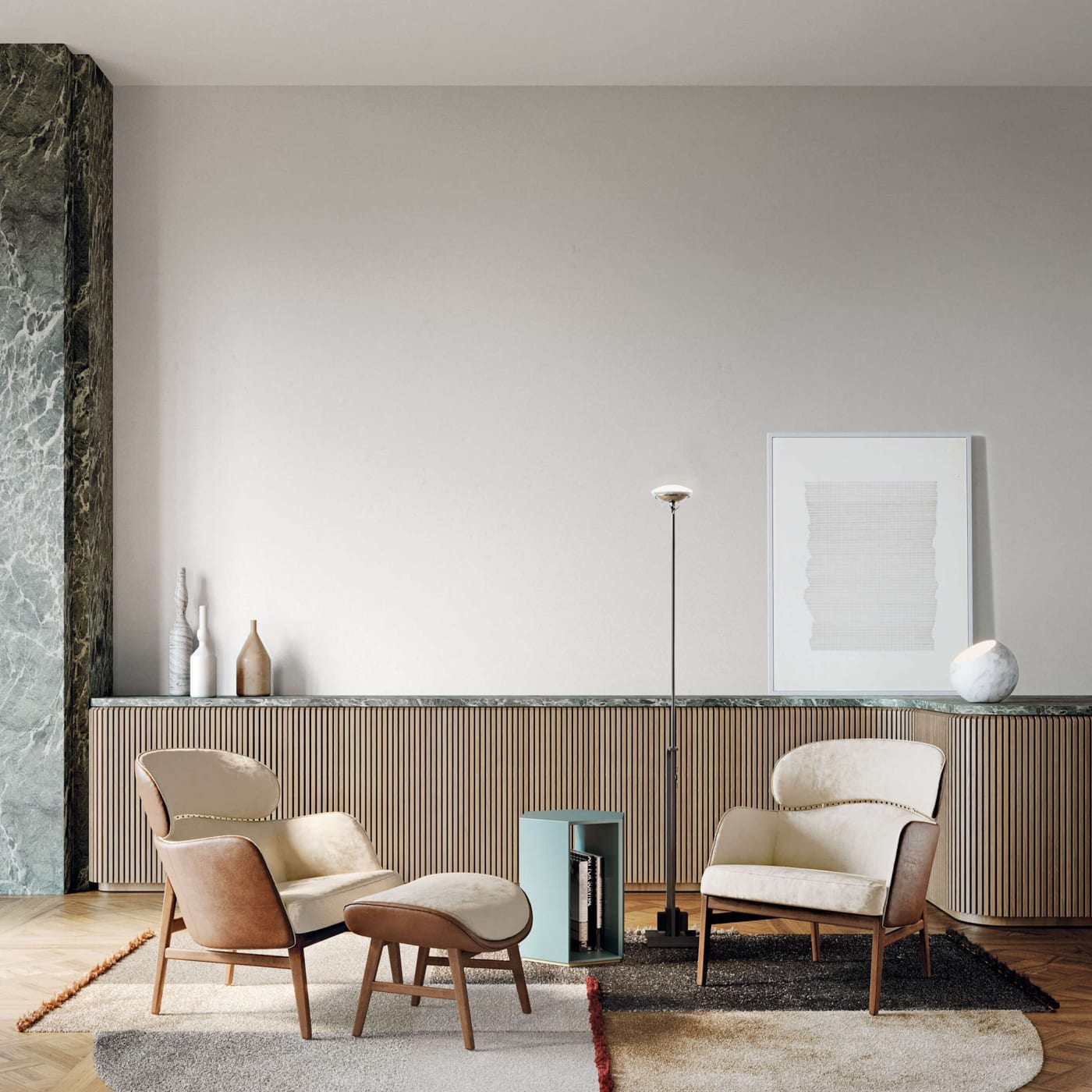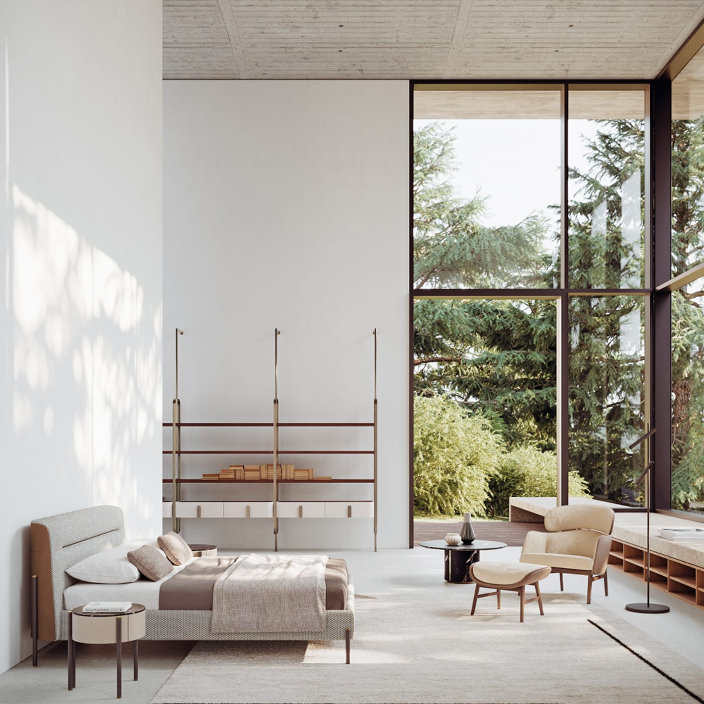 Capital keeps the Dafne pouf focused on essentials: a solid internal structure, carefully upholstered in wood-based framing with a choice of leather or fabric on the exterior. The finishes allow the piece to move from casual spaces to more formal rooms without changing its character. In leather, it feels tailored and architectural. In fabric, it takes on a softer, more relaxed attitude. The construction is compact yet sturdy, designed to stay composed even with frequent use.