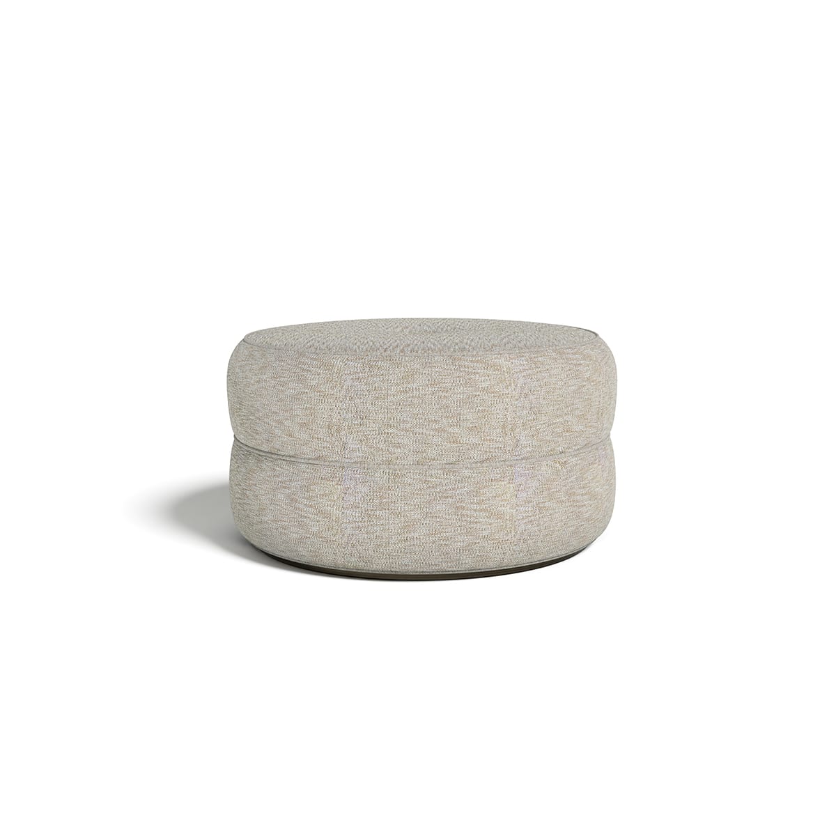 Capital finishes this pouf with a mix of metal, fabric, and leather, allowing different expressions on the same clear form. Metal details introduce a subtle structure and a sense of precision. Fabric or leather upholstery, depending on the configuration, softens the geometry and adds warmth.