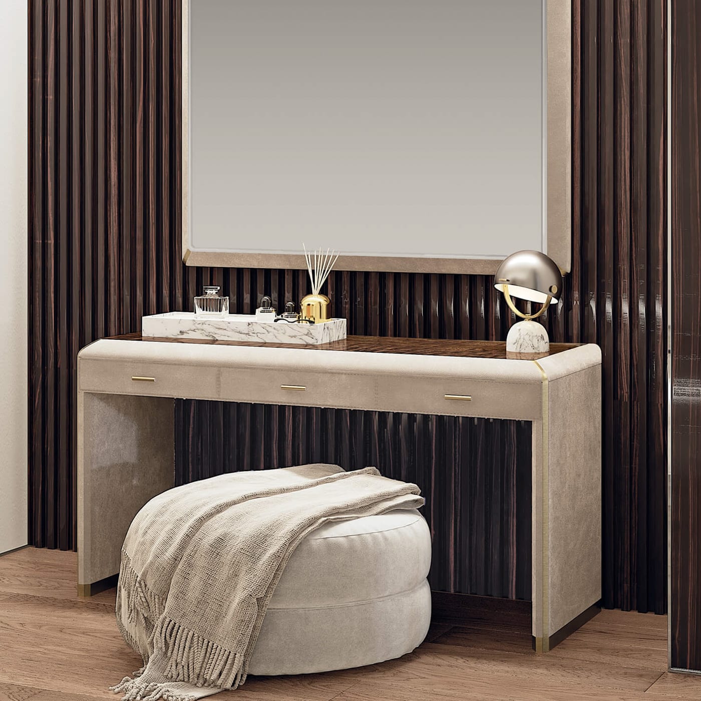 Kazar moves effortlessly between living rooms, bedrooms, and open-plan spaces. It fits in front of a sofa, beside an armchair, or at the end of a bed. In more generous rooms, two pieces facing a sofa create an easy, flexible alternative to a traditional coffee table.