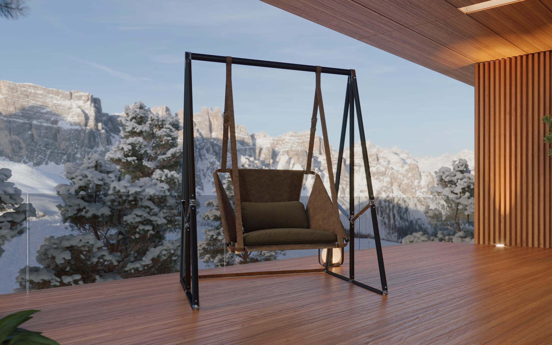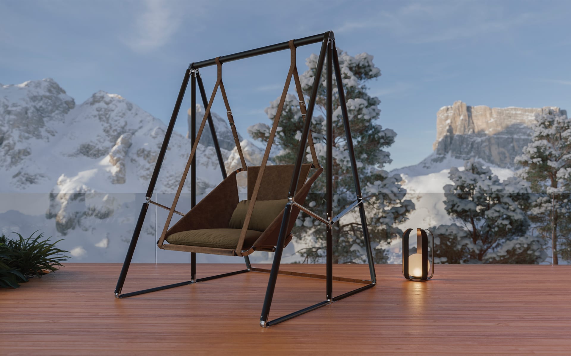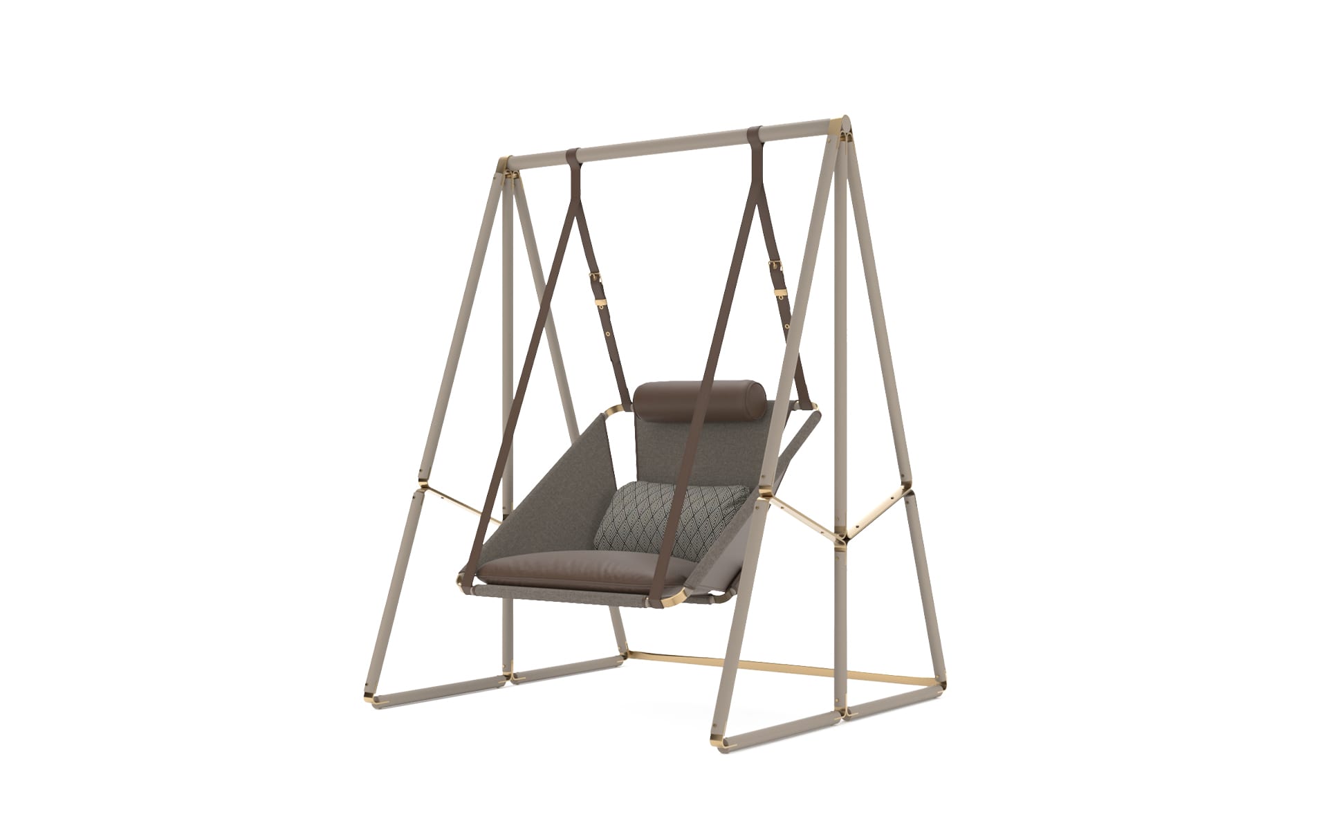 The Allure Swing Chair is a modern statement with a clear point of view. Its structure reads clean and architectural, but it still feels inviting. The proportions are generous, giving it presence without looking heavy. And the detailing is what pulls it together: stainless steel buckles paired with outdoor leather straps, used with restraint.