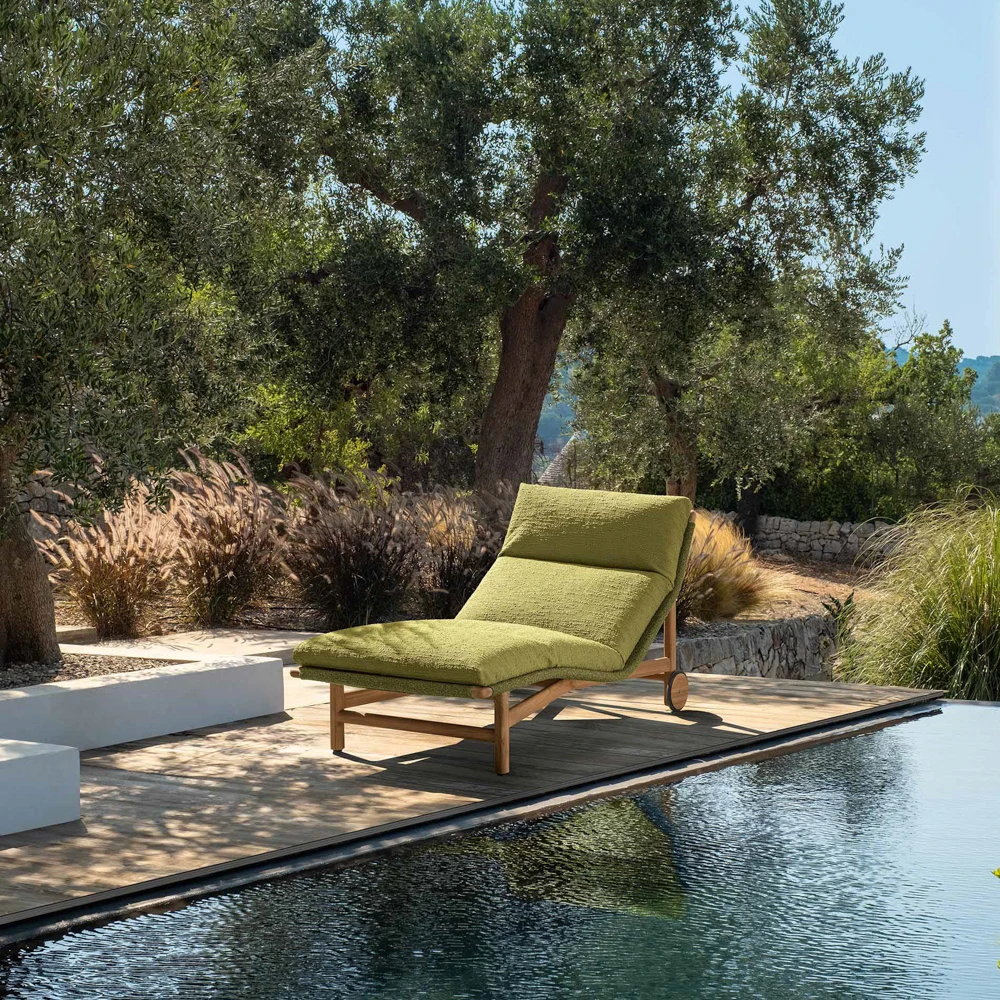 Teak is known to age well outdoors, developing character over time. With simple, routine care, the frame will carry through season after season. The bouclé upholstery is selected for outdoor use and holds up to daily life while keeping its inviting hand. The design itself avoids trends, so it stays relevant as spaces change. In short, the Jun Sunbed delivers lasting comfort and a steady, understated presence—exactly what’s wanted from a piece that earns its place outside.