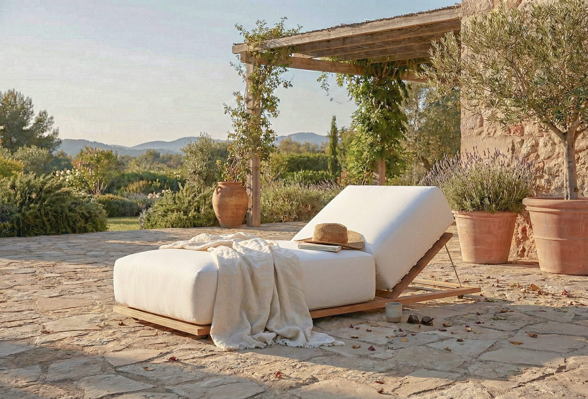 Comfort is at the core of the Morbido experience. The thick, supportive cushion is engineered for extended lounging, whether you’re soaking in the sun, reading, or simply unwinding. The adjustable backrest is discreetly supported by a metal mechanism that allows for multiple reclining positions without interrupting the clean design language. Every detail has been considered to ensure both visual harmony and practical usability.