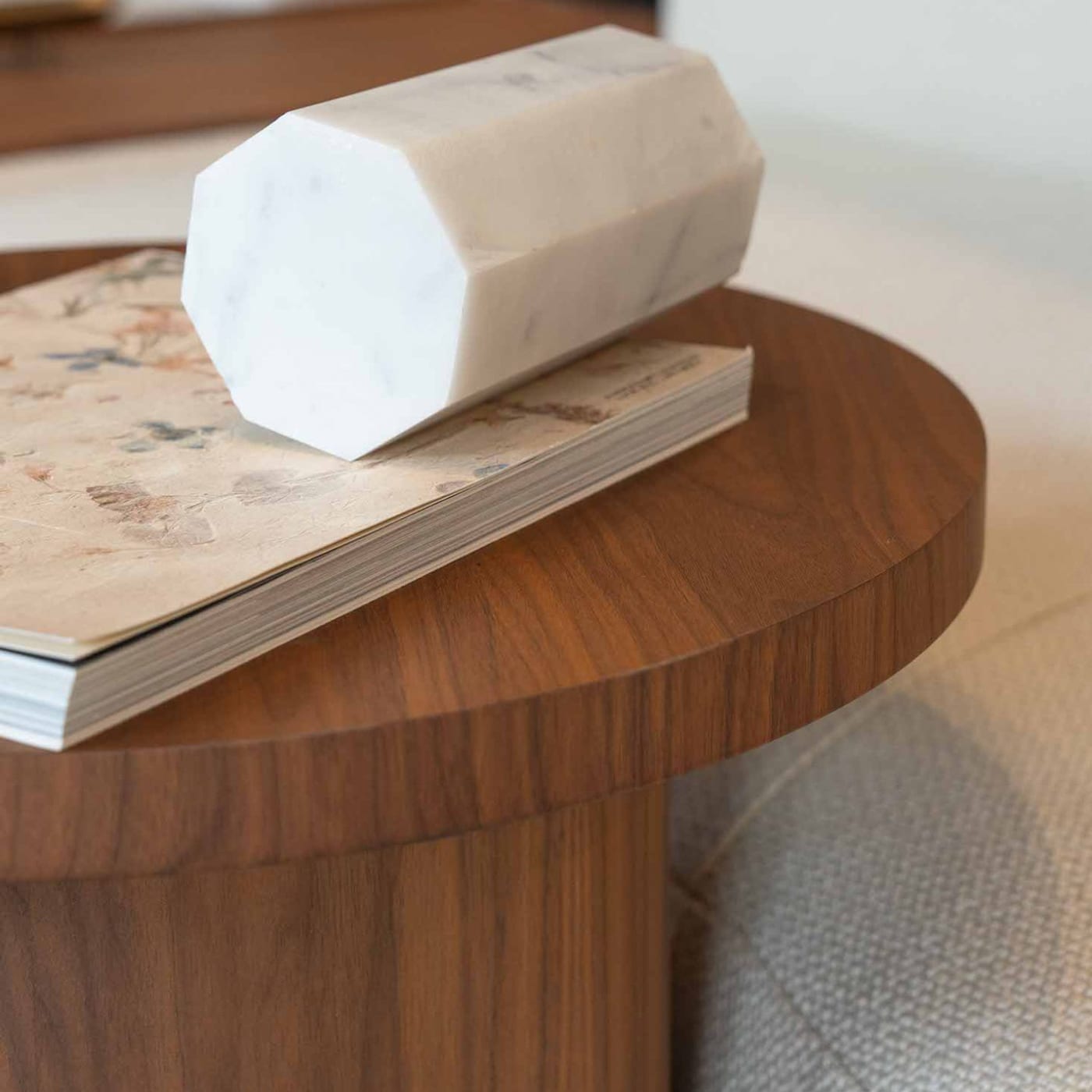 This table is available in marble and wood finishes, with the choice of glossy or matte surfaces. The glossy versions reflect light and subtly brighten the area around them. Matte finishes, on the other hand, bring a softer, more understated character. It’s a simple decision that changes the mood of the piece quite a bit.