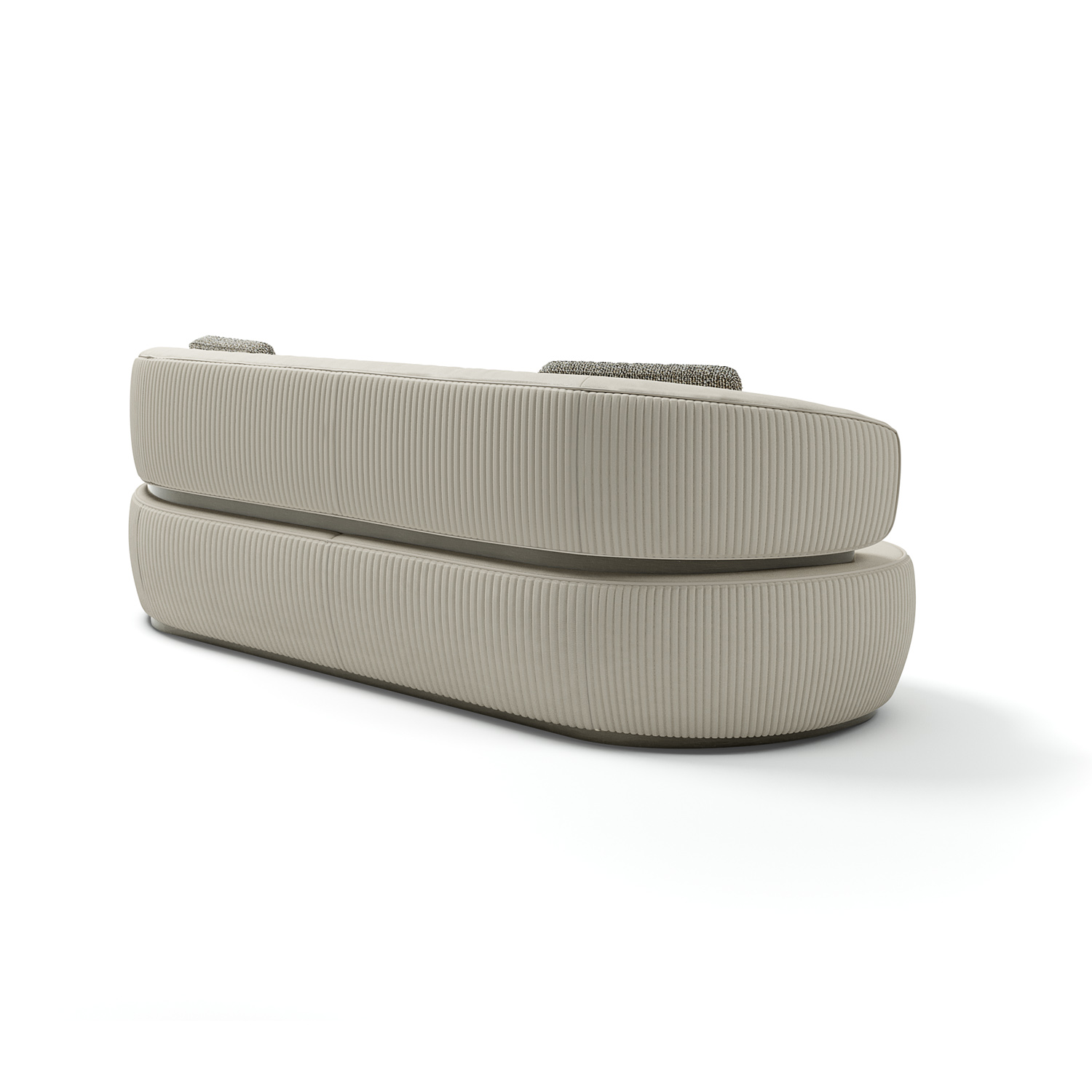 Designed by Boatto Martino Studio for the Sofa 2018 collection, this piece is built with a firm structural core wrapped in softer volumes. The contrast between the rigid frame and the padded interior is intentional. It gives the sofa its clear outline while keeping the seat visually generous and inviting.