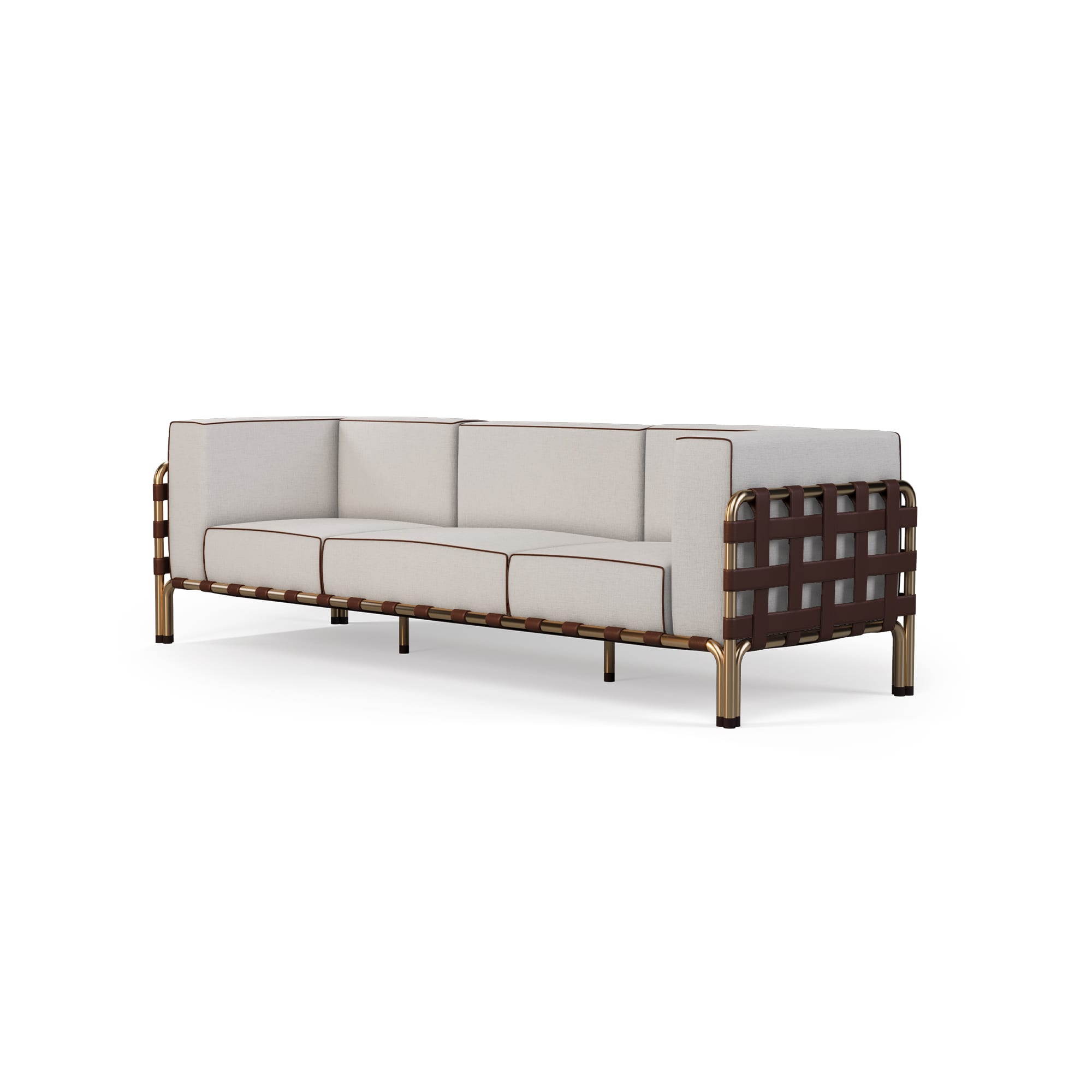 Myface builds the Hound Sofa around a lacquered stainless steel structure, chosen for outdoor resilience and a crisp, modern edge. Metallic details are plated stainless steel, which adds a refined note without turning the piece into a statement for the sake of it.