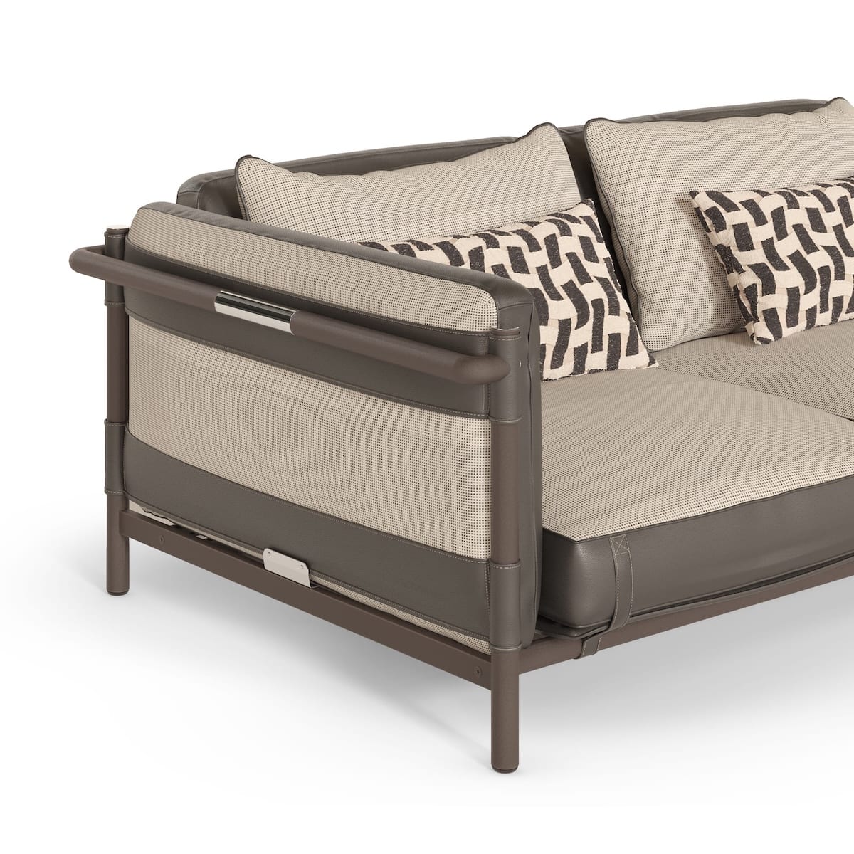 Maro leans into comfort through generous, reversible cushions. The seat invites longer stays, not quick perching. And the reversibility is practical, especially outdoors, where wear patterns happen faster and cleaning schedules are real life.