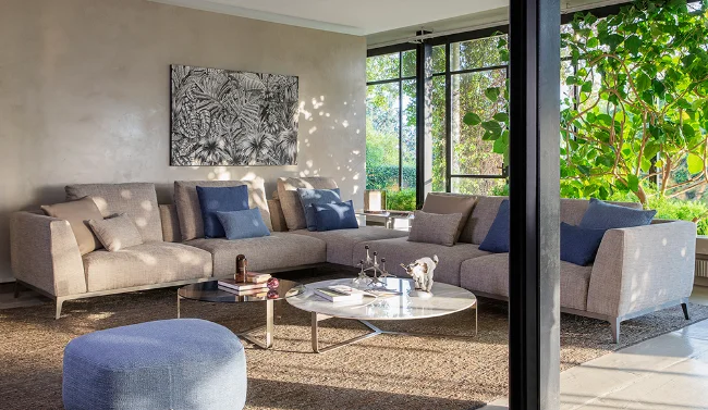 Olivier Modular Sofa is not just a sofa; it is the undeniable protagonist of a luxurious living room, achieved through a harmonious selection of materials, shapes, textures, and finishes. The result is a space that exudes understated elegance and sophistication, making Olivier the perfect centerpiece for those who appreciate refined design and exceptional comfort.