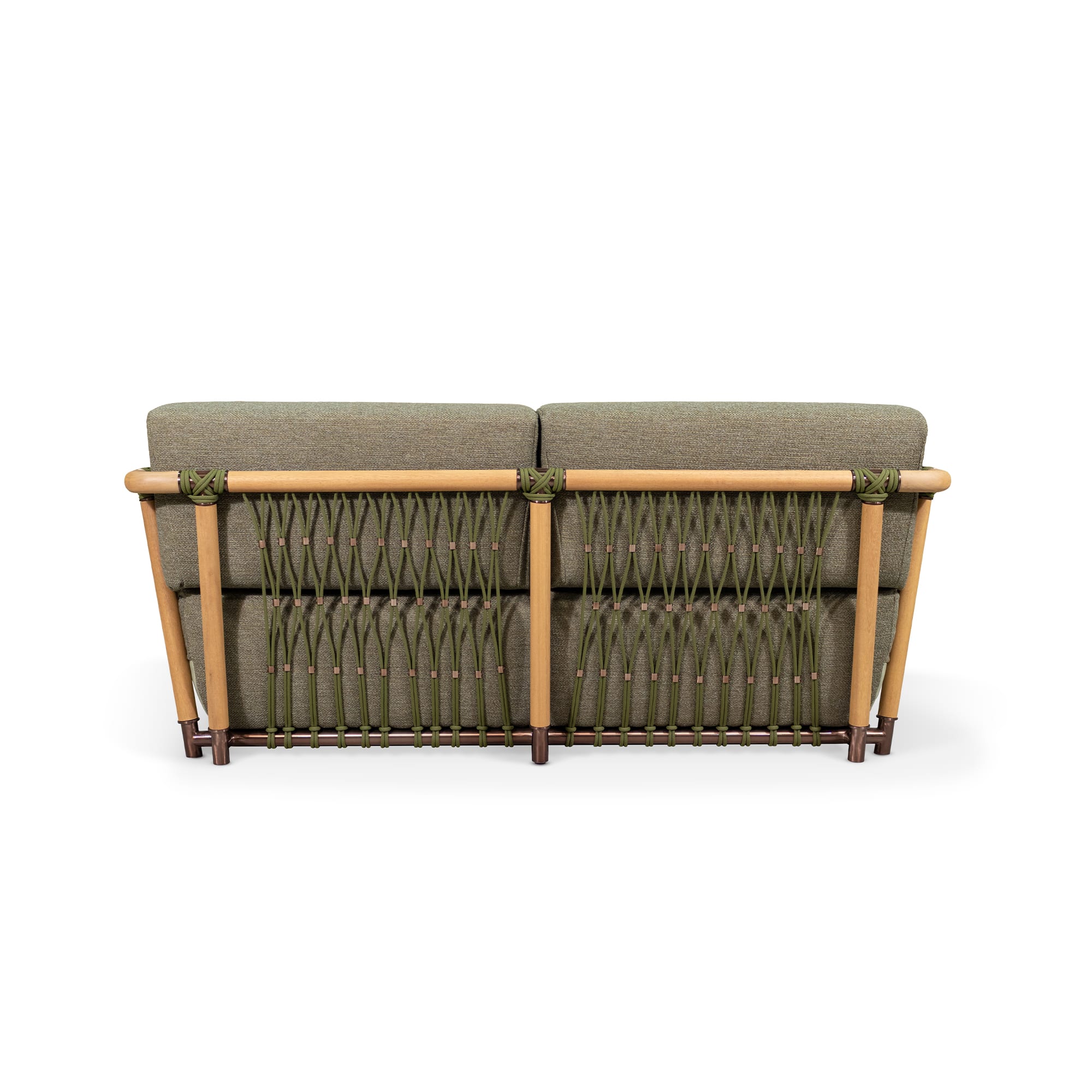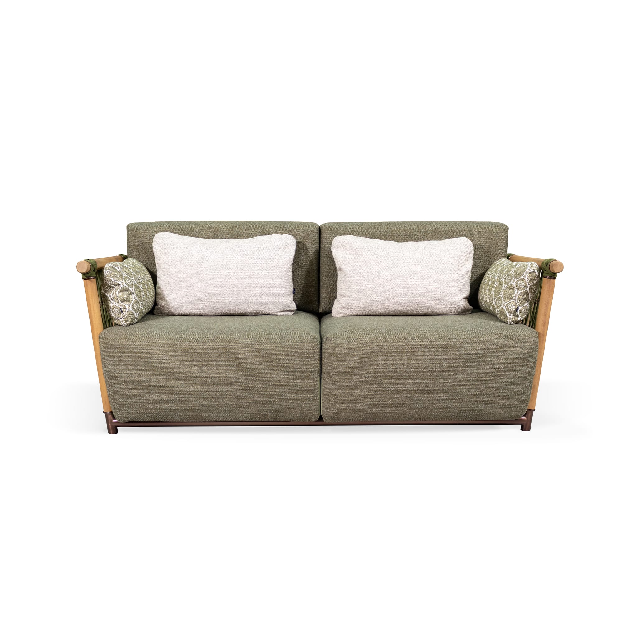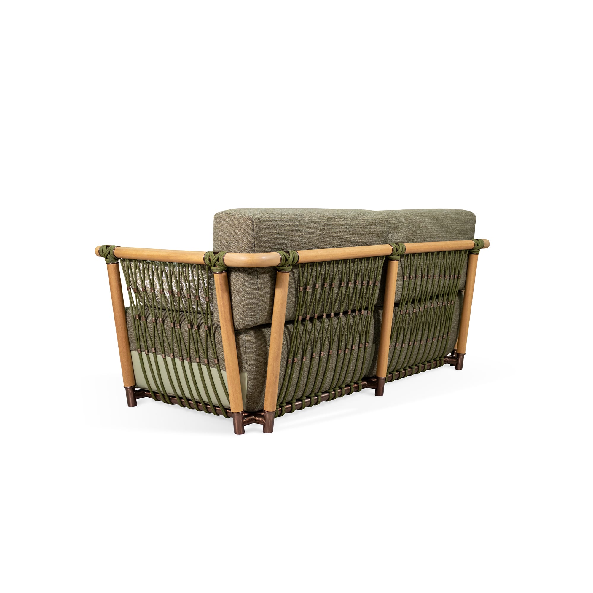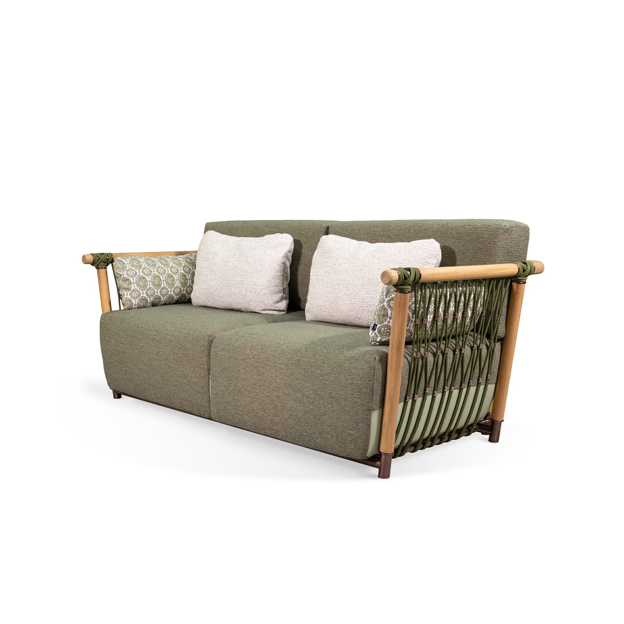 This is a sofa designed to stay outdoors and keep its composure. The material choices—iroko, outdoor fabric, outdoor rope, and plated stainless steel—are practical without looking technical. The included cover helps extend its good looks, especially through long stretches of sun, wind, or occasional rain.