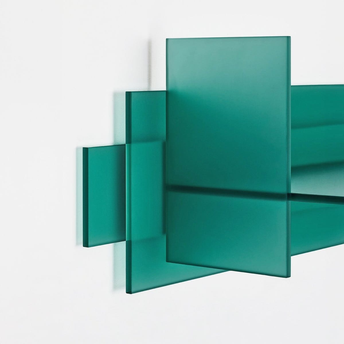 The structure comes from overlapping sheets joined through a UV bonding method. There’s no visual distraction from hardware, just clean junctions where planes cross and lock together. It’s the kind of construction that rewards close viewing, especially along the edges and seams.