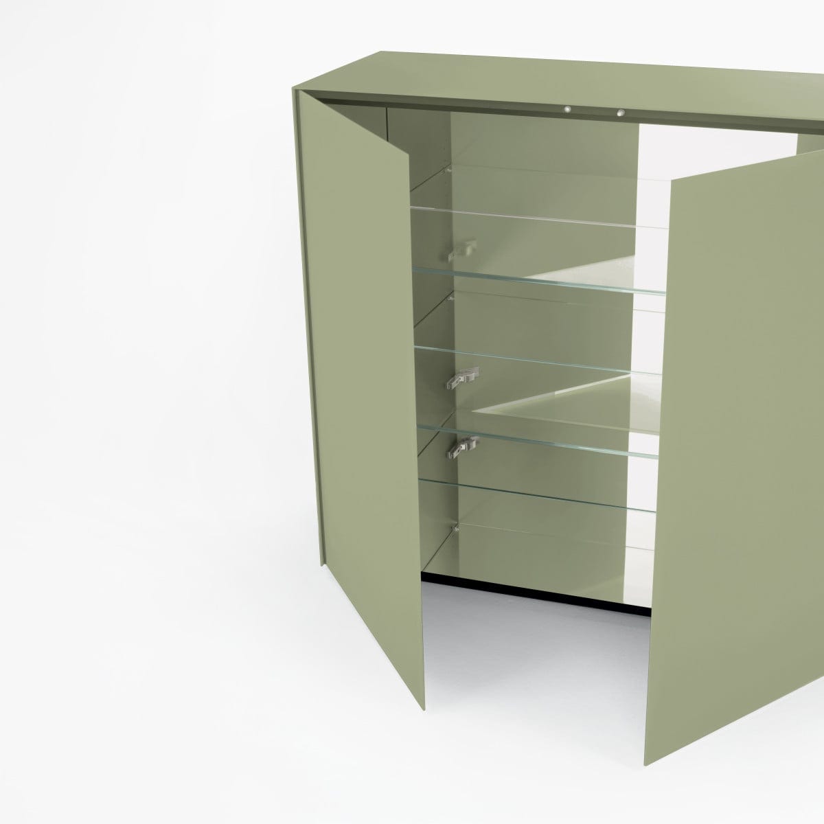 Tempered glass and laminated interiors are made for long-term use, but the piece still asks for thoughtful handling. Keep the mirrored fronts looking sharp with simple, non-abrasive cleaning, and avoid harsh tools that can dull the lacquered surface. The result is a cabinet that stays composed year after year, with the kind of clarity that doesn’t go out of place.