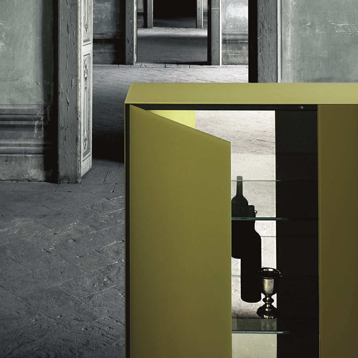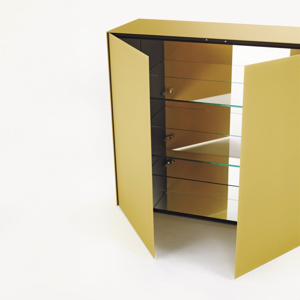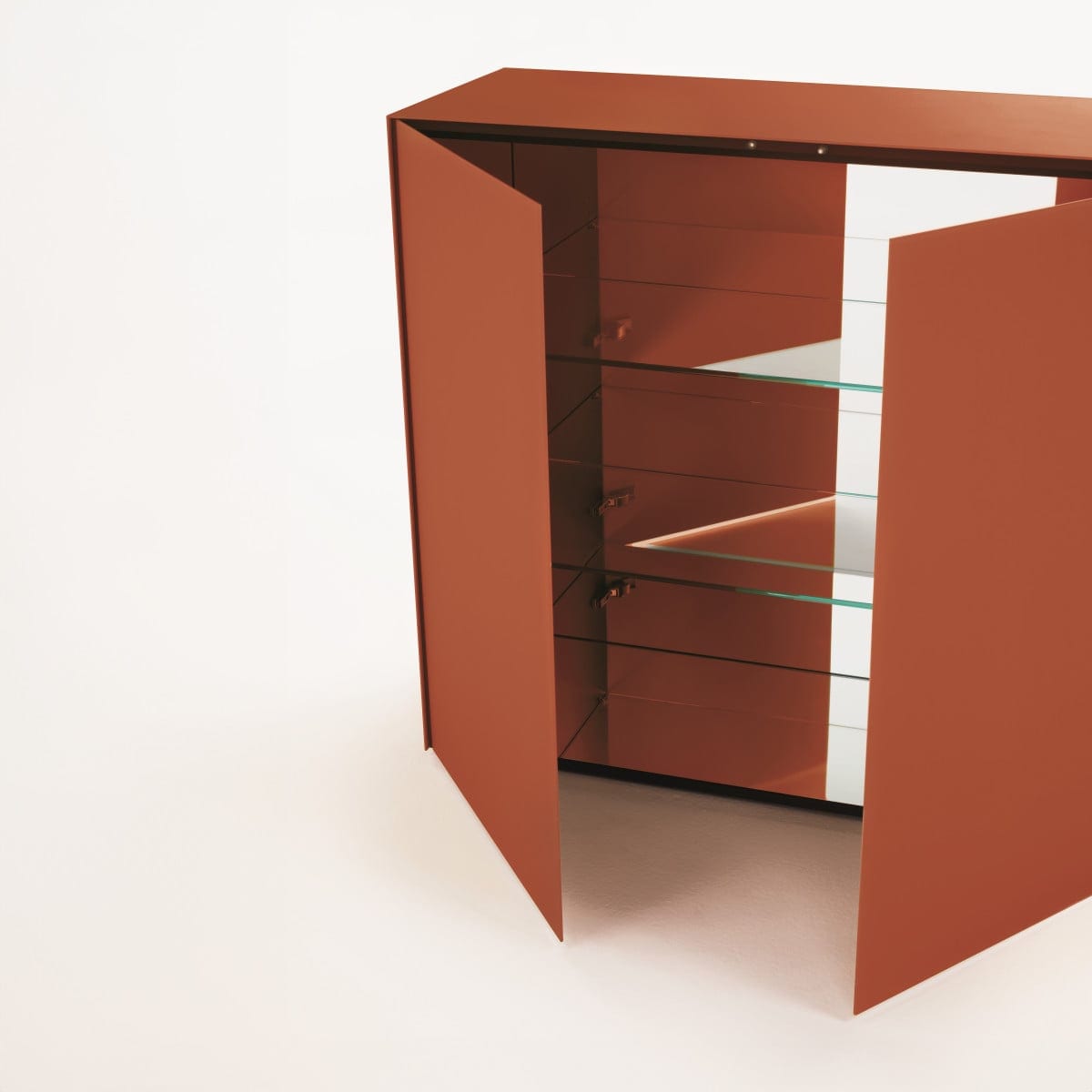 Magic Box works best where clean lines are appreciated: a living room that needs discreet media storage, a dining space that wants a refined sideboard, or a bedroom that benefits from closed compartments and a reflective finish. The consistent depth makes it easy to align with seating, walls, and circulation paths.