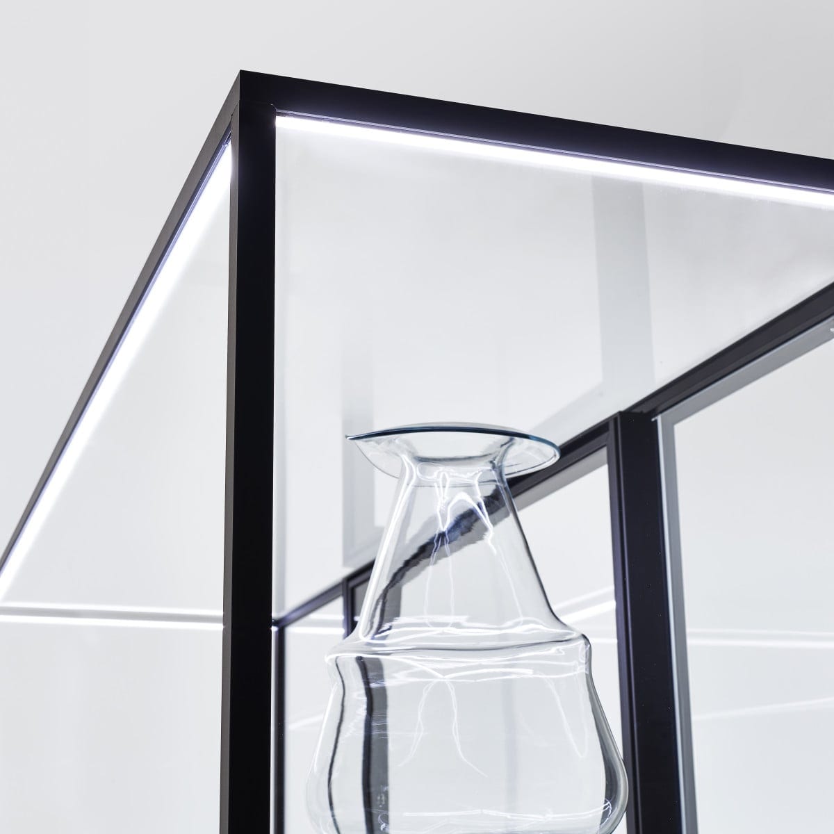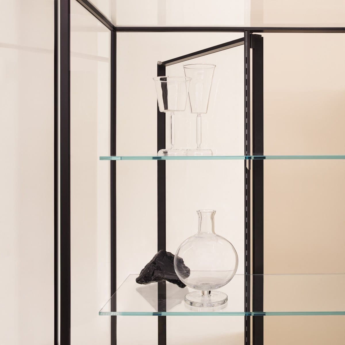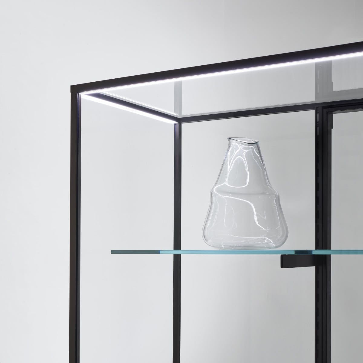 The transparent extra-light glass and the thinness of the structure create true 360° visibility. That makes arranging items feel less like “storage” and more like curation, whether the contents are personal or professional.