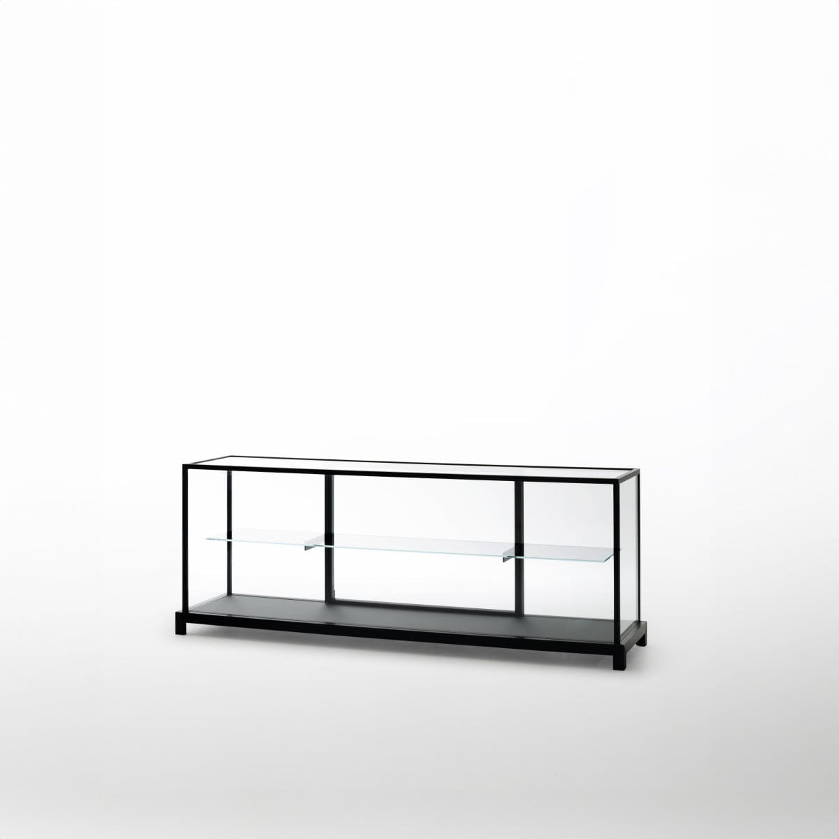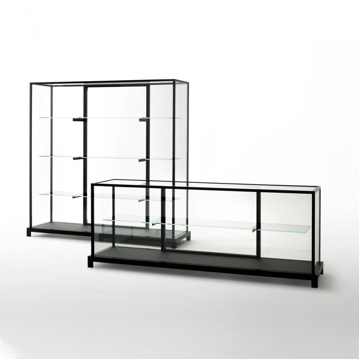 Wunderkammer is a display case and storage unit designed by Piero Lissoni with a clear, architectural presence. The lines are tight and deliberate, with a dark brown anodized aluminum structure that reads as a slim frame rather than a heavy cabinet. And because the glass is so visually quiet, the focus stays on what’s inside.