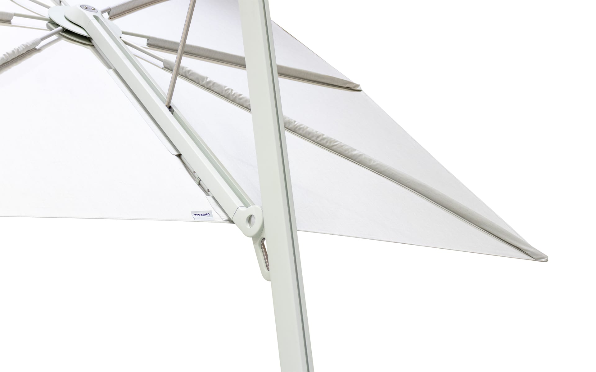 Myface keeps the construction straightforward and resilient. The pole is powder-coated aluminum, chosen for outdoor durability and a refined finish. Fiberglass ribs support the canopy, balancing strength with flexibility when the weather shifts.